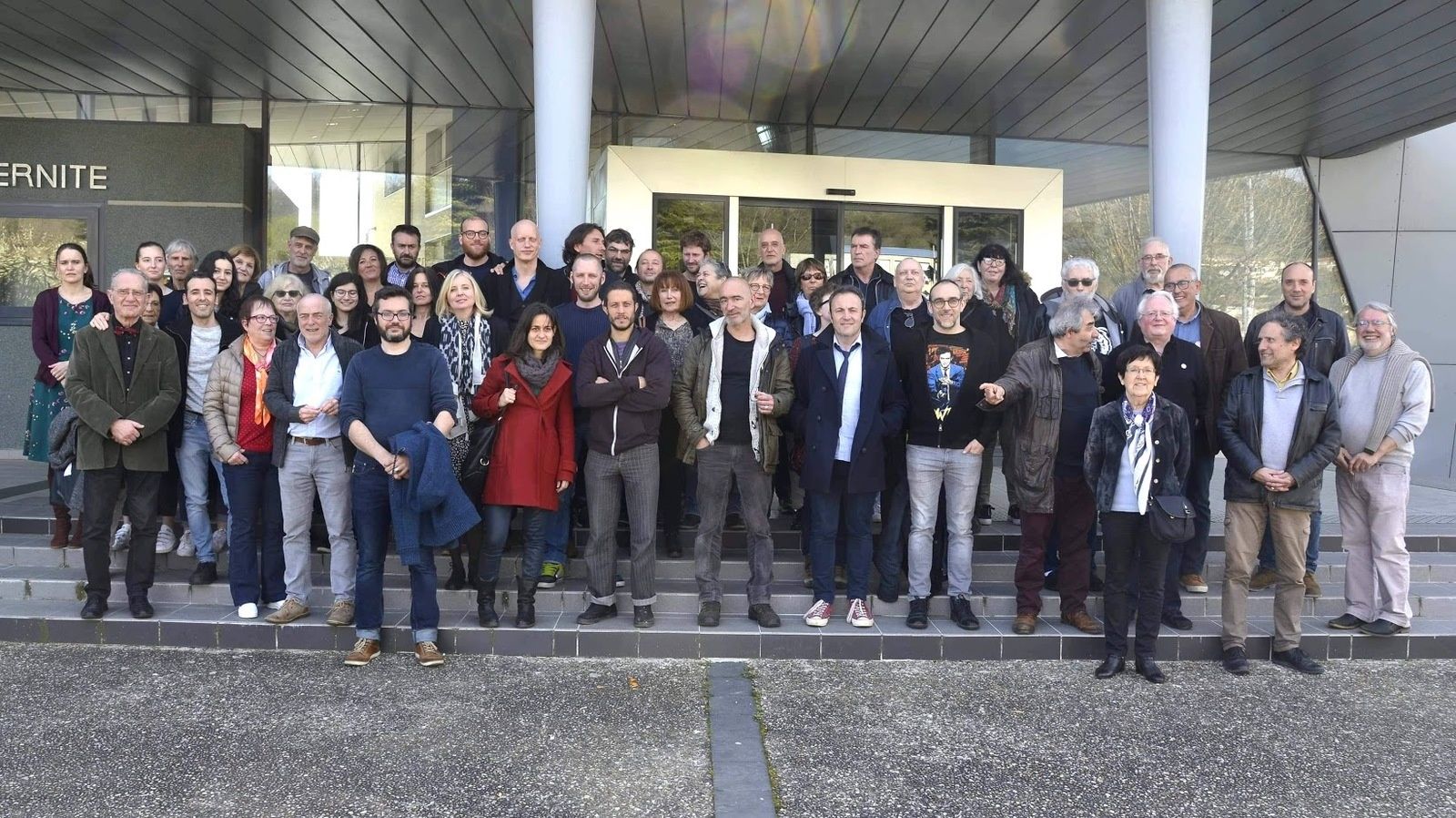 C'est Bob Polar qui nous l'a fait parvenir. Je ne sais qui a commencé ; mais cette tradition bien ancrée à Lamballe a fait tache. À Bon Encontre aussi, pour la deuxième année, auteurs, lycéens primés, scénaristes, modérateurs, organisateurs, bénévole, bref tout le monde qui s'est retrouvé là pendant deux jours pose pour une photo de famille.
